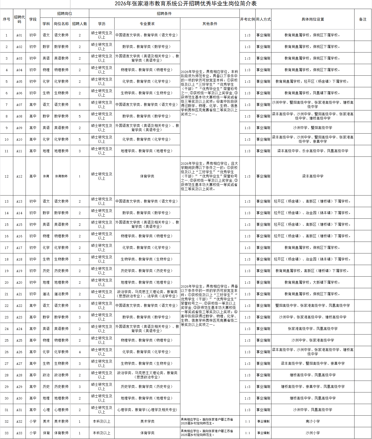 附件:2026年张家港市教育系统公开招聘优秀毕业生岗位简介表