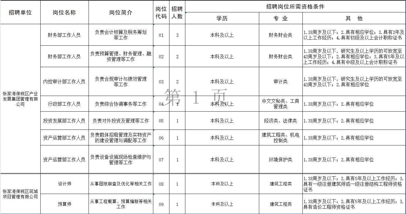 附件1:张家港保税区有关企业面向社会公开招聘工作人员岗位简介表 (1)