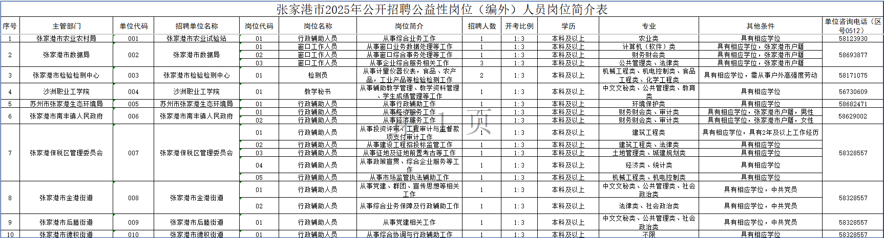 招聘岗位及条件等详见《张家港市2025年公开招聘公益性岗位(编外)人员岗位简介表》(附件1,以下简称“岗位简介表”)。
